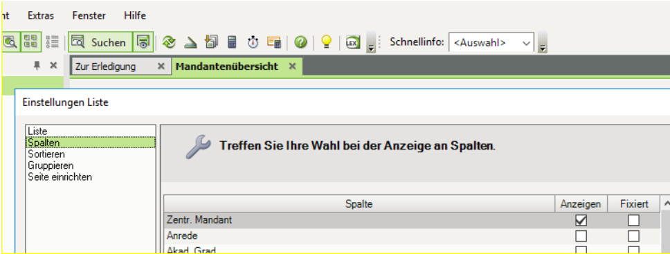 In der Mandantenübersicht sollten folgende “Felder” eingeblendet sein:
